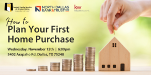 Mortgage Basics: Our partners at North Dallas Bank & Trust (NDBT) will break down the mortgage process, guiding you through the entire journey from application to closing. You’ll also gain insight into how much you need to pay for down payment requirements and explore available resources.