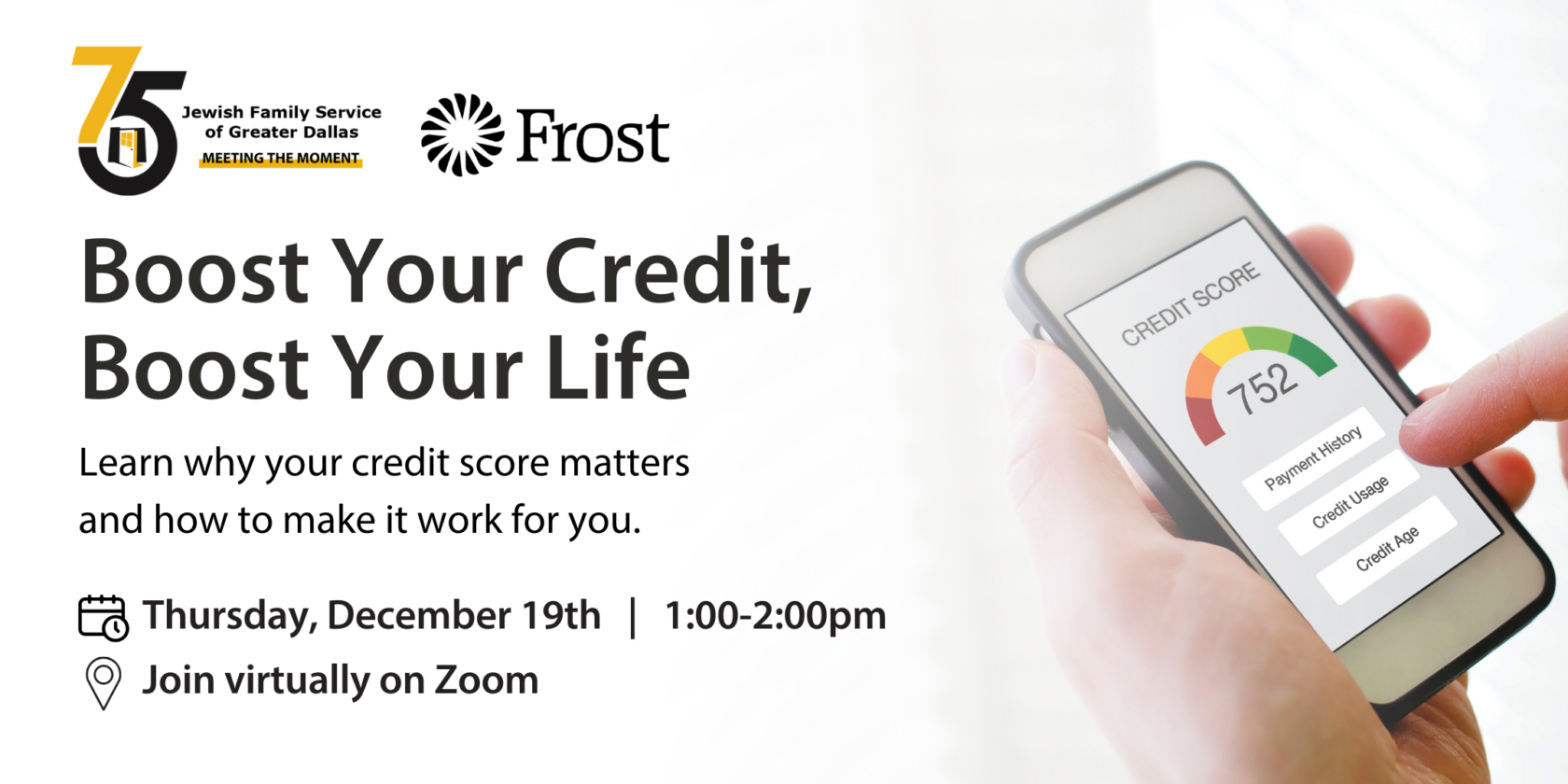 CLICK HERE TO REGISTER ON EVENTBRITE Why Does Your Credit Score Matter? In this webinar, you'll learn how credit reporting works and how to make it work for you! Did you know your credit score can impact your ability to rent a home, secure a loan, or even get a job? Join our expert banking […]